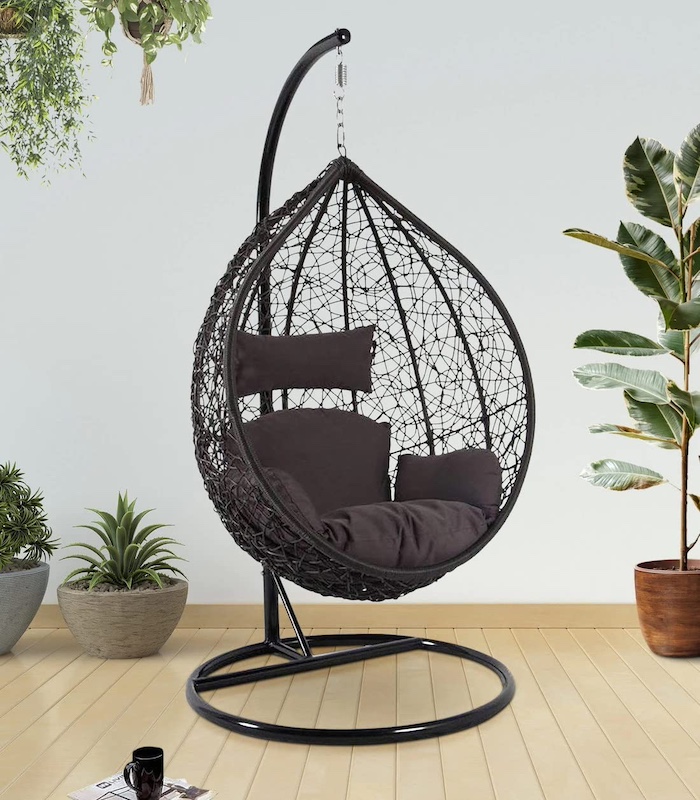 The versatile colour options, brown, white, and black, make it easy to match any décor style. Its sleek, contemporary design enhances any space, while the swinging motion adds a fun and soothing element to your surroundings.