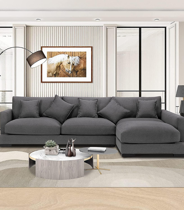 Introducing the ultimate in comfort and contemporary style. Our Modern L-Shaped Sectional Sofa is more than just a place to sit—it’s the centerpiece of your living space, designed to bring people together and provide a haven of relaxation. This sofa perfectly balances a chic, minimalist aesthetic with plush, inviting comfort, making it the ideal choice for family rooms, media rooms, and stylish living areas.