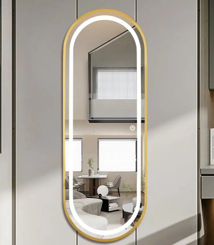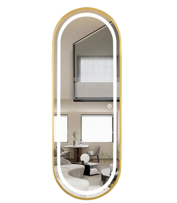 Illuminate your space with our elegant oval LED wall mirror. Featuring a sleek gold frame and integrated, energy-efficient lighting, it’s the perfect blend of modern style and functional design. This mirror instantly elevates your decor while providing beautiful, even light for any room.
